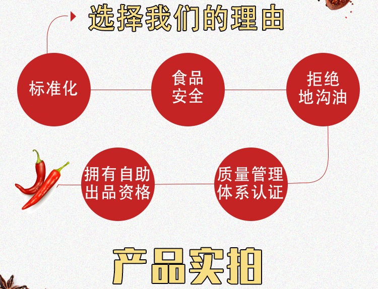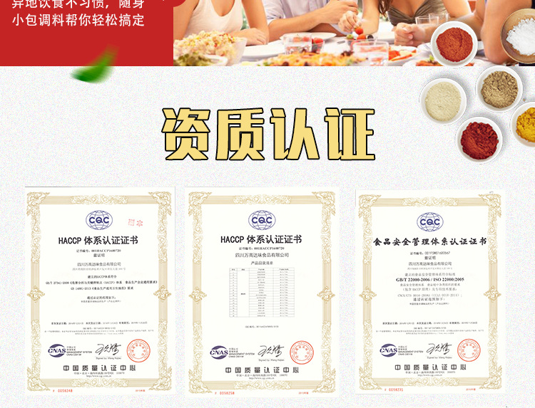 詳細(xì)信息 ![]() ![]() ![]() ![]() ![]() ![]() ![]() ![]() ![]() ![]() ![]() ![]() ![]() ![]() "產(chǎn)品配置(醬包37g、醋包15g、黃金豆8g、做料包8g、粉包5g) 主要經(jīng)營:公司擁有調(diào)味品、方便食品、肉制品、蔬菜制品的生產(chǎn)資質(zhì)。主要產(chǎn)品覆蓋火鍋底料、辣椒紅油、干鍋香鍋底料、面食調(diào)料、粉類調(diào)料等標(biāo)準(zhǔn)化小調(diào)料包,以及酸辣粉、綿陽米粉、新疆炒米粉、自熱火鍋等方便食品的研發(fā)與定制。" |