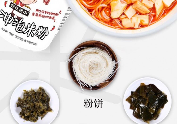 桶裝綿陽米粉 肥腸牛肉對澆米粉 隨意搭配 吃在途中