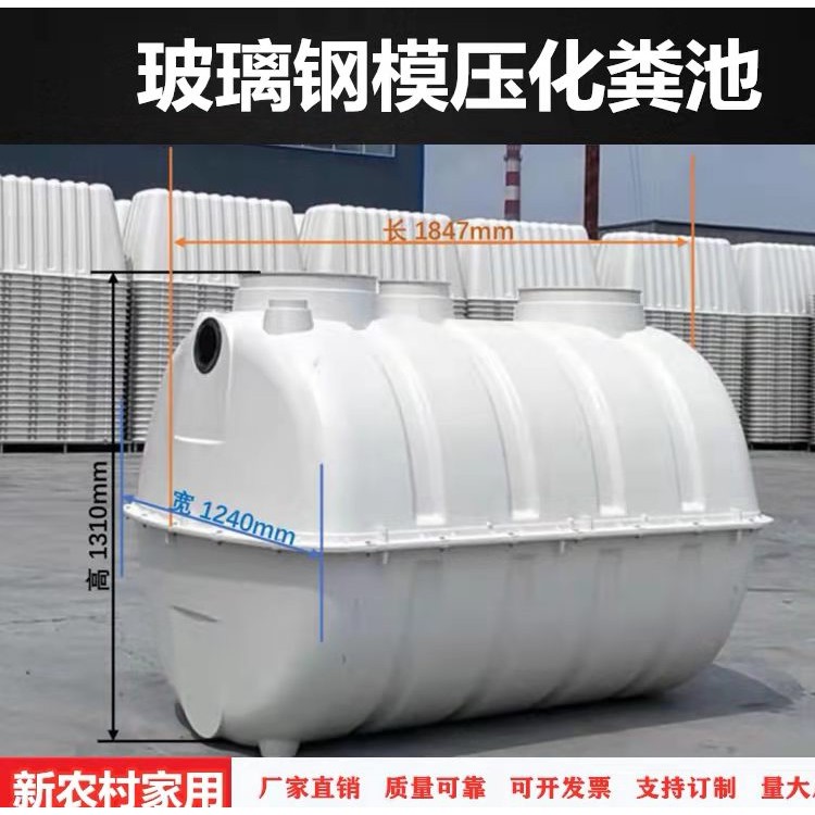 三格式玻璃鋼化糞池采用玻璃纖維增強不飽和聚酯樹脂的高強度玻璃纖維復合材料為主體材料,采用,先進的玻璃鋼纏繞工藝制作筒體凹凸面車輪形封頭結構。簡體的壁厚、加盤的間距等采用ansVs結構計算軟件進行強度、鋼度優化設計、結構設計獨特、技‘術領先,具有質量輕、強度高、耐腐蝕性好、無滲漏、無污染、成型性好、使用壽命長等特點。池體兩端設有進、出水管和罐頂設有檢查井口,池內用隔倉板分格,并設有環流泛水裝置以增加污水滯留時間,提高腐化效果。