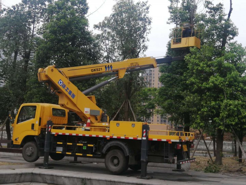 在作業斗內和回轉座上均設有操縱裝置, 遠距離控制發動機的啟動/停止、高速/低速,采用電液比例閥控制臂的動作,平穩性好,工作臂可左、右360°連續旋轉,靠連桿機構自動維持作業槽水平,主泵出現故障時可操縱應急泵下降作業槽,具備夜間照明,可起吊重物。產品被廣泛用于電力、路燈、市政、園林、通信、機場、造(修)船、交通、廣告、攝影等高空作業領域。
