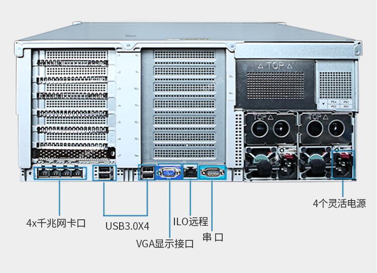 惠普DL580 Gen10 4U機架式服務器主機 配置: 4顆至強金牌5120 56核2.2G CPU四電源 64G內存 4塊2.4T 10K SAS硬盤 |
