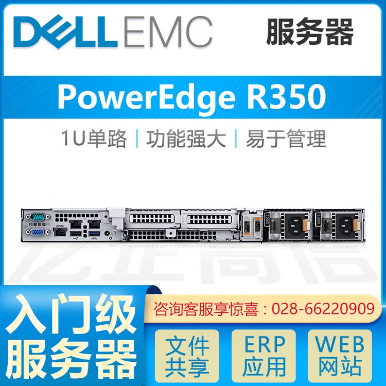 工程師推薦:戴爾(DELL) R340丨R350 1U機架式服務器主機 R350 至強E-2356G 6核 3.2GHz 64G內存丨4*6TSATA企業丨H345
