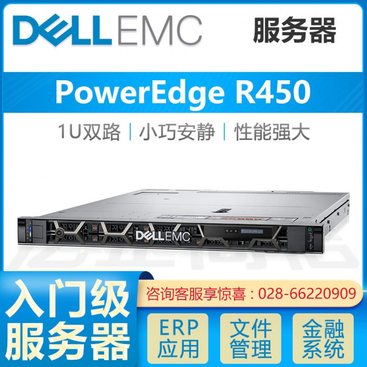 入門推薦:戴爾(DELL)R450服務器主機 intel至強銀牌4209Y 8C/16T 2.8G 2*16G內存/1塊1.2T SAS硬盤