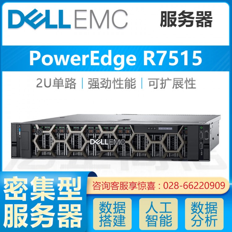軟件已經開始定義數據中心,因此,應針對應用程序性能來擴展平臺設計的規模。PowerEdge R7515 是一款具有 GPU 配置的存儲密集型服務器,適用于可擴展的虛擬化環境。高端規格: