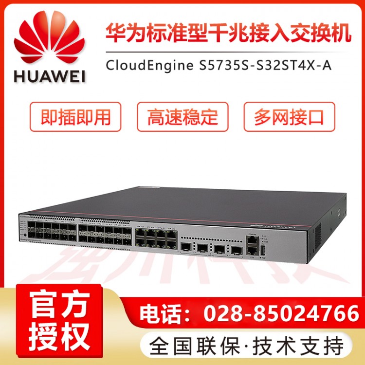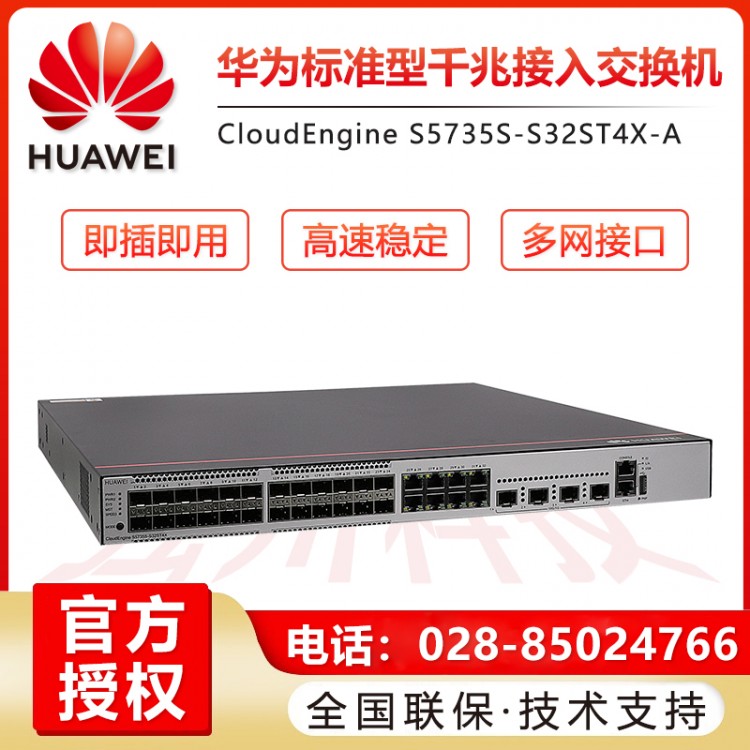 四川成都華為交換機總代理 華為企業級交換機經銷商  華為核心交換機代理商 綿陽華為交換機總代理 南充華為交換機代理商  華為S5735S-S32ST4X-A 24千兆光口 8千兆電 4萬兆光高端企業級光纖交換機報價
