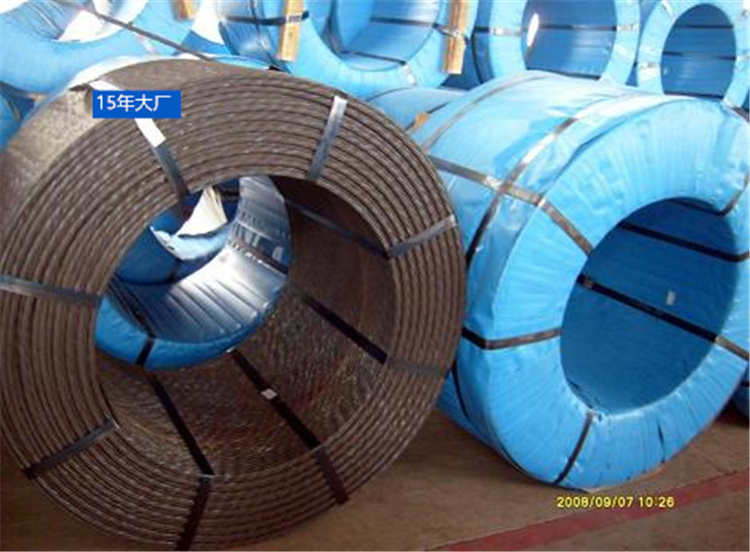 特點:預應力鋼絞線的主要特點是強度高和松弛性能好,另外展開時較挺直。常見抗拉強度等級為1860兆帕,還有1720、1770、1960、2000、2100兆帕之類的強度等級。這種鋼材的屈服強度也較高,