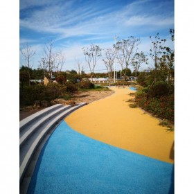 彩色透水透氣混凝土地坪是由彩色骨料、高標(biāo)號(hào)混凝土、摻合料,水性樹脂、彩色強(qiáng)化劑、穩(wěn)定劑及水等拌制而成的一種多孔輕質(zhì)混凝土,由粗骨料表面包覆一薄層漿料相互粘結(jié)而成孔穴均勻分部的蜂窩狀結(jié)構(gòu),故具有透氣、透水和重量輕的特點(diǎn)。