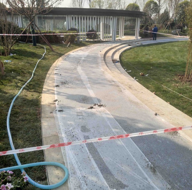 透水混凝土與水泥混凝土屬性類似,施工完畢后第二天要進(jìn)行水養(yǎng)護(hù),若天氣干熱,可在澆注后8小時(shí)灑水養(yǎng)護(hù),每天至少2次,養(yǎng)護(hù)時(shí)間不少于3天。但淋水時(shí)不宜用壓力水水直接沖淋混凝土表面,應(yīng)直接從上往下淋水。