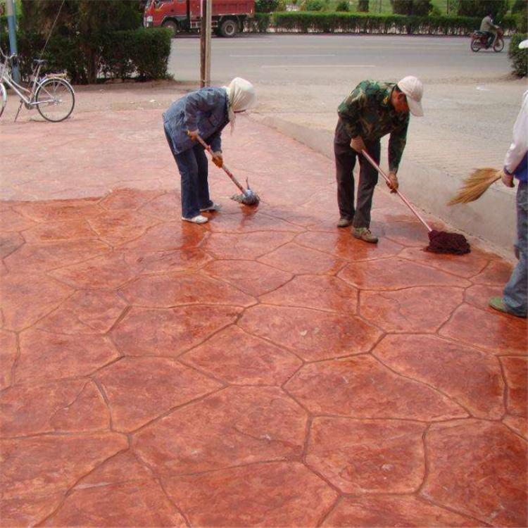 7、理論上對藝術地坪封閉2-3天后進行沖洗,正常情況下為了防止新造路面被污染,工程全部紋理壓印完成后統一進行沖洗。沖洗時不必將脫模粉全部沖洗干凈,應留有10%左右的脫模粉顏色,這樣的藝術地面就會有效果很好的漸變效果。