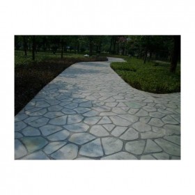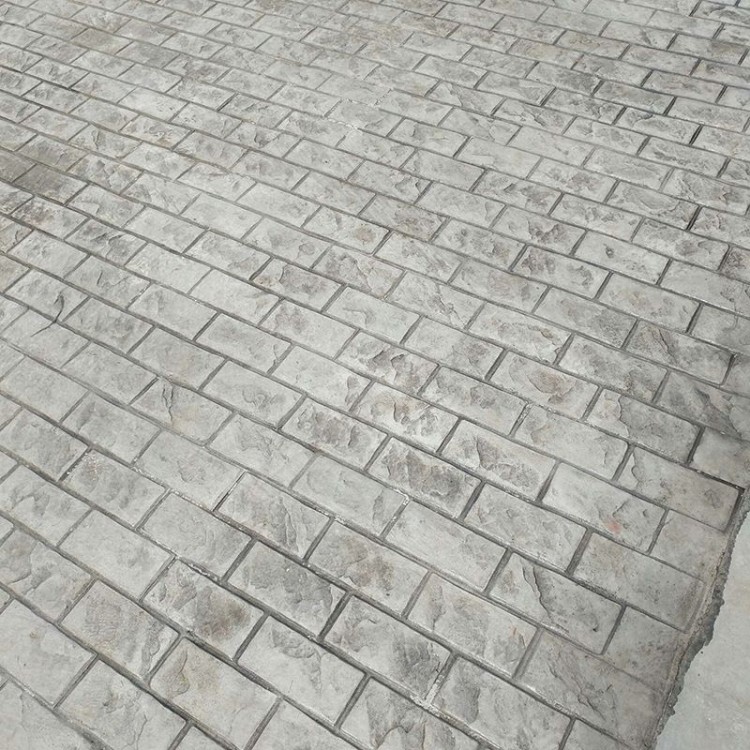 5、使用藝術地坪模具對地坪面層進行紋理處理。藝術地坪模具應配套使用,首先確定好紋理的分布方向,選好一塊模具放置的位置和角度,然后其它的模具依次緊貼一塊模具放置。彩色混凝土藝術地坪壓模采用壓模,壓模應由技術較好的人員進行作業以保證壓紋深度一致和模具放置的準確性。