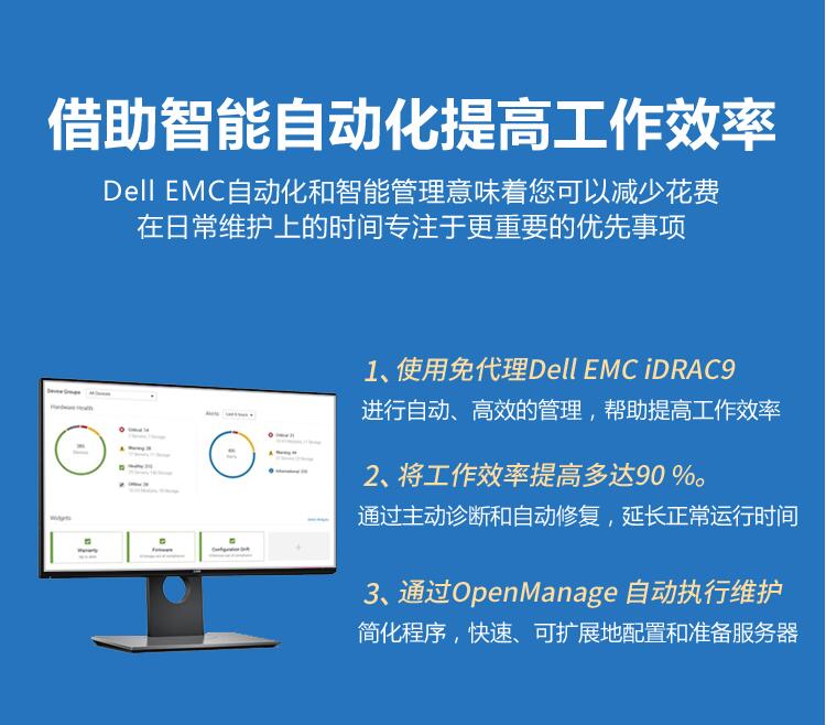 • 借助Dell OpenManage智能自動化功能,您花費在例行維護上的時間將會減少,從而可以專注于關鍵業務優先事項。