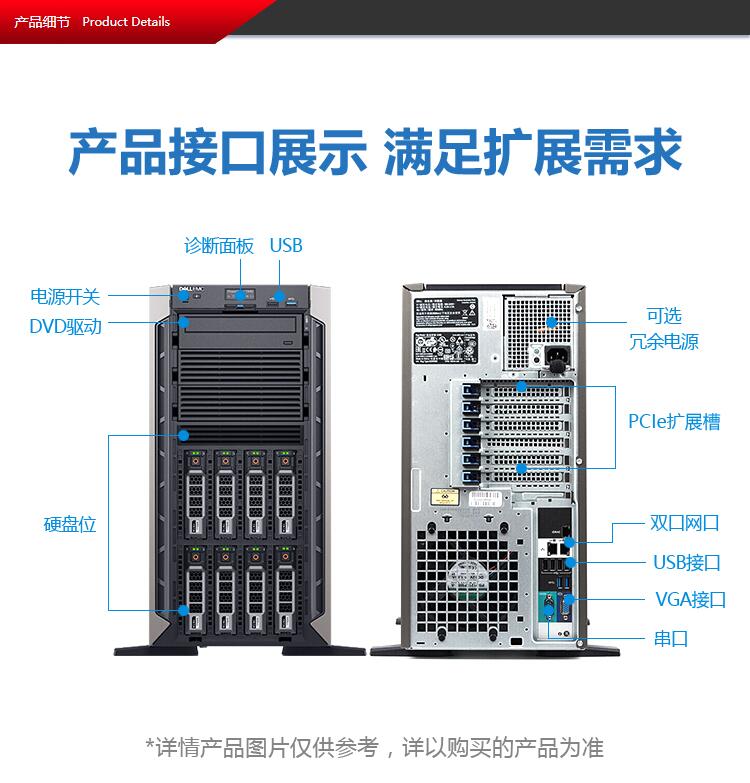 戴爾(DELL)PowerEdgeT440 塔式服務器主機ERP文件存儲數據共享定制 1顆銀牌4210R10核20線程 32G丨1.2T 10K*3丨H330