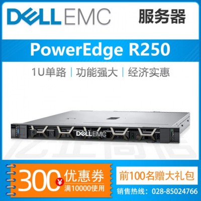 工程師推薦:戴爾(DELL) R240丨R250 1U機架式服務器主機 R250 至強E-2324G 4核 3.1GHz 32G內存丨3*2TSATA企業丨H345