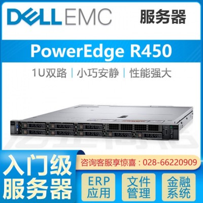 入門推薦:戴爾(DELL)R450服務器主機 intel至強銀牌4209Y 8C/16T 2.8G 2*16G內存/1塊1.2T SAS硬盤