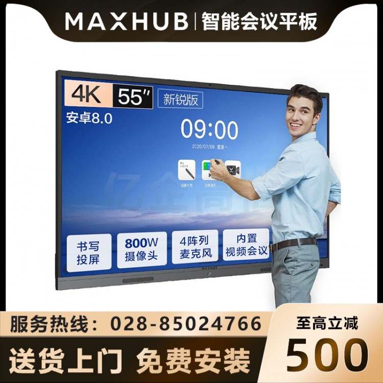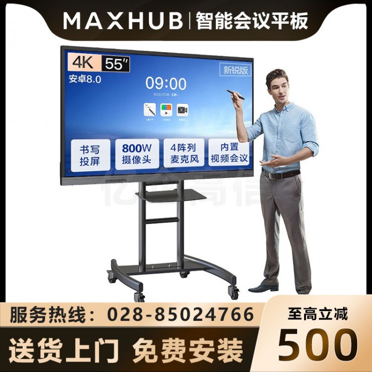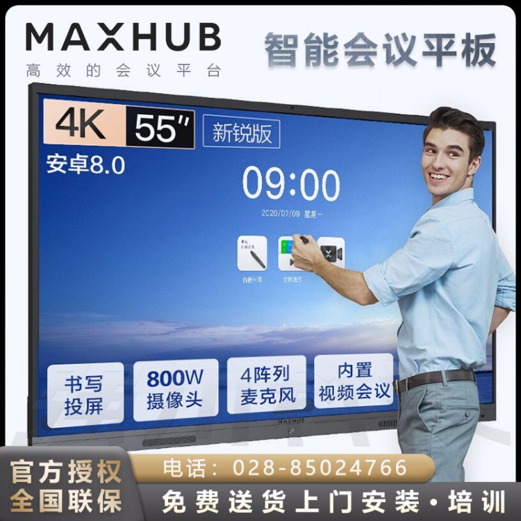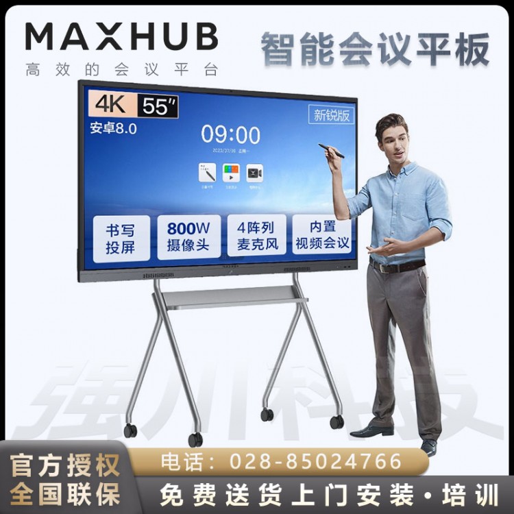 雅安MAXHUB智能會議平板代理商-成都MAXHUB會議平板授權經銷商-MAXHUB智能電子白板代理商-MAXHUB會議平板V5新銳版55英寸智能會議大屏教學視頻會議一體機電子白板EC55CA _咨詢熱線:028-85024766、18215624006(微信同號),成都強川科技有限公司_成都市武侯區磨子橋新世紀東樓18樓A座