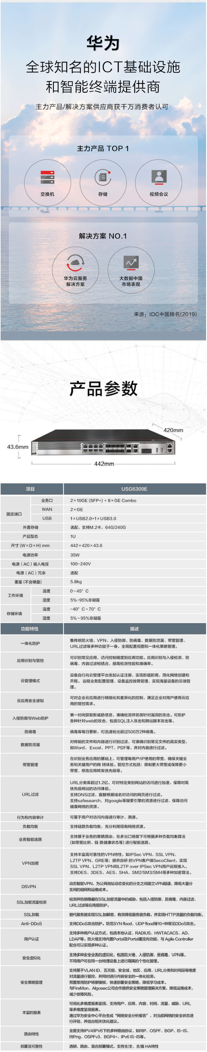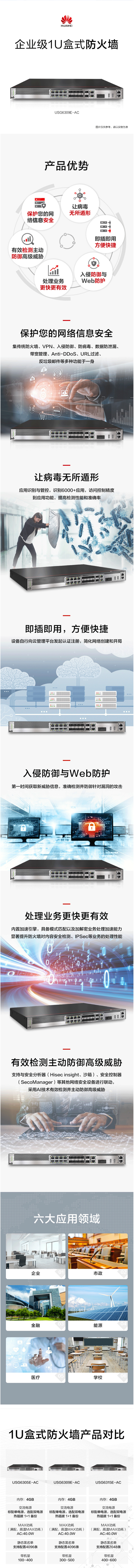 一體化防護(hù):集傳統(tǒng)防火墻、VPN、入侵防御、防病毒、數(shù)據(jù)防泄漏、帶寬管理、Anti-DDoS、URL