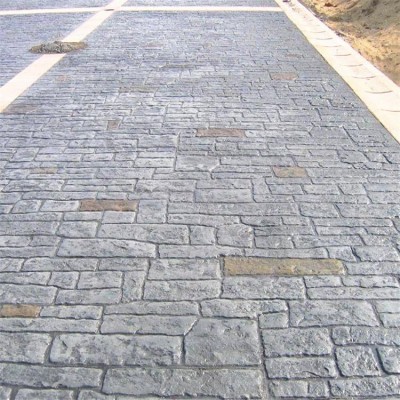 產品特點是能夠直接在混凝土上非常逼真地模仿許多建筑裝飾材料的質地及色澤,呈現出的效果酷似天然的青石板、木板、火山巖石等等。它能夠刻意表現出自然材質的粗礪,凹凸不平和復雜紋理,整體成型,一次性鋪裝,施工快,同時又解決了普通彩色道磚的整體性差,高低不平易松動,使用周期短等缺點。