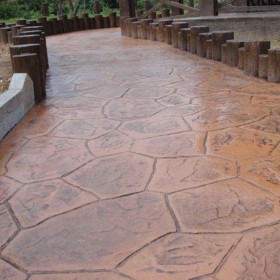 7、理論上對藝術地坪封閉2-3天后進行沖洗,正常情況下為了防止新造路面被污染,工程全部紋理壓印完成后統一進行沖洗。沖洗時不必將脫模粉全部沖洗干凈,應留有10%左右的脫模粉顏色,這樣的藝術地面就會有效果很好的漸變效果。