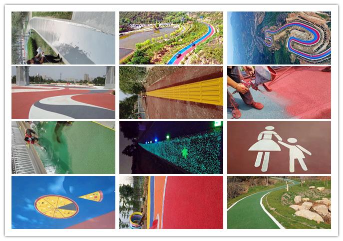 “彩色防滑路面”、“彩色透水混凝土”、“彩色藝術壓印地坪...