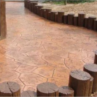 5、使用藝術地坪模具對地坪面層進行紋理處理。藝術地坪模具應配套使用,首先確定好紋理的分布方向,選好一塊模具放置的位置和角度,然后其它的模具依次緊貼一塊模具放置。彩色混凝土藝術地坪壓模采用壓模,壓模應由技術較好的人員進行作業以保證壓紋深度一致和模具放置的準確性。