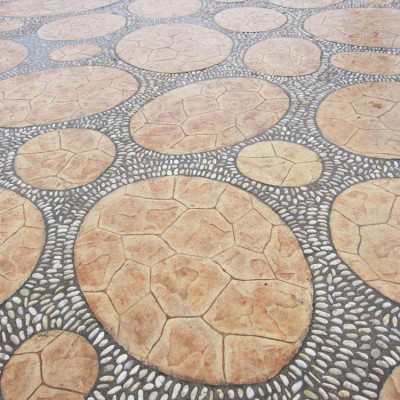 5、使用藝術(shù)地坪模具對地坪面層進(jìn)行紋理處理。藝術(shù)地坪模具應(yīng)配套使用,首先確定好紋理的分布方向,選好一塊模具放置的位置和角度,然后其它的模具依次緊貼一塊模具放置。彩色混凝土藝術(shù)地坪壓模采用壓模,壓模應(yīng)由技術(shù)較好的人員進(jìn)行作業(yè)以保證壓紋深度一致和模具放置的準(zhǔn)確性。