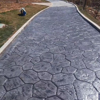 5、使用藝術(shù)地坪模具對地坪面層進行紋理處理。藝術(shù)地坪模具應配套使用,首先確定好紋理的分布方向,選好一塊模具放置的位置和角度,然后其它的模具依次緊貼一塊模具放置。彩色混凝土藝術(shù)地坪壓模采用壓模,壓模應由技術(shù)較好的人員進行作業(yè)以保證壓紋深度一致和模具放置的準確性。