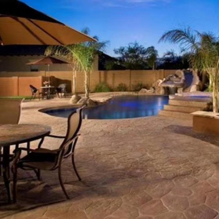 5、使用藝術(shù)地坪模具對(duì)地坪面層進(jìn)行紋理處理。藝術(shù)地坪模具應(yīng)配套使用,首先確定好紋理的分布方向,選好一塊模具放置的位置和角度,然后其它的模具依次緊貼一塊模具放置。彩色混凝土藝術(shù)地坪壓模采用壓模,壓模應(yīng)由技術(shù)較好的人員進(jìn)行作業(yè)以保證壓紋深度一致和模具放置的準(zhǔn)確性。
