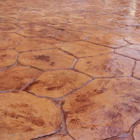 5、使用藝術地坪模具對地坪面層進行紋理處理。藝術地坪模具應配套使用,首先確定好紋理的分布方向,選好一塊模具放置的位置和角度,然后其它的模具依次緊貼一塊模具放置。彩色混凝土藝術地坪壓模采用壓模,壓模應由技術較好的人員進行作業以保證壓紋深度一致和模具放置的準確性。