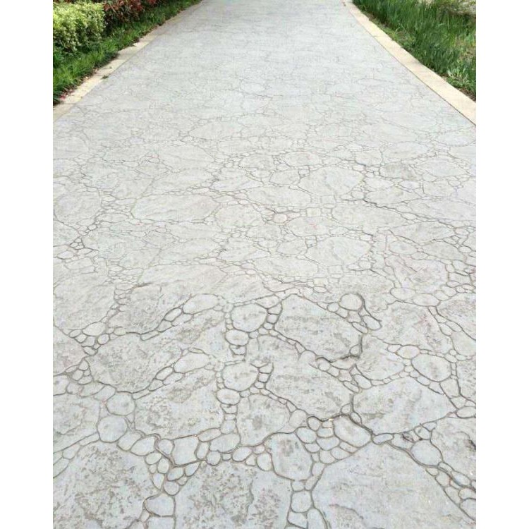 5、使用藝術地坪模具對地坪面層進行紋理處理。藝術地坪模具應配套使用,首先確定好紋理的分布方向,選好一塊模具放置的位置和角度,然后其它的模具依次緊貼一塊模具放置。彩色混凝土藝術地坪壓模采用壓模,壓模應由技術較好的人員進行作業以保證壓紋深度一致和模具放置的準確性。