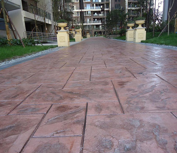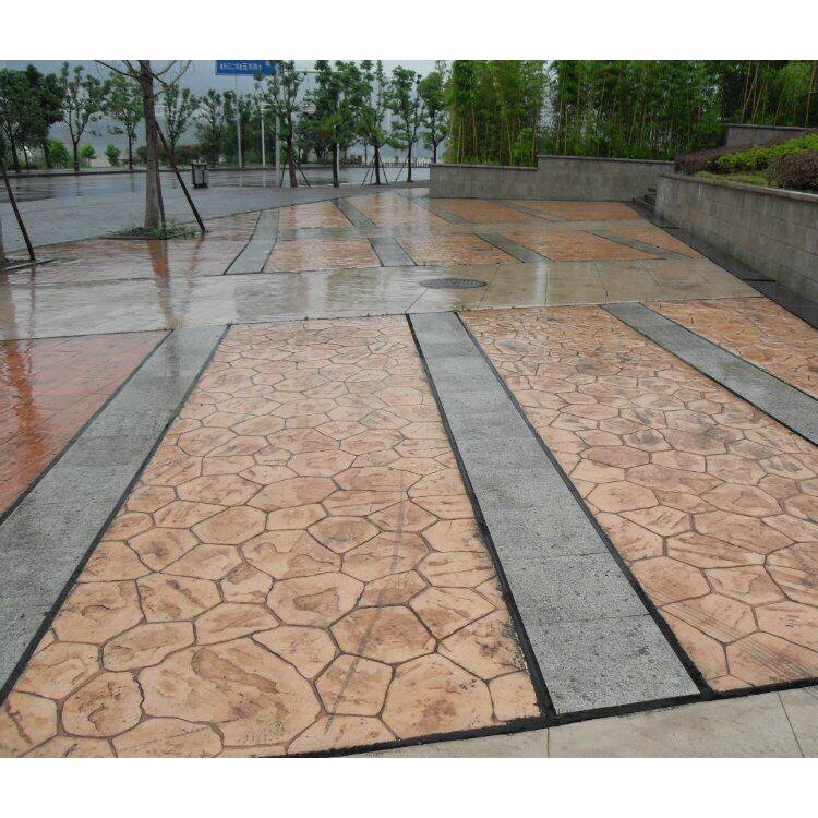 對比壓模地坪舊工藝,新工藝的主要不同在于上色和脫模,新工藝使用的是混凝土著色劑對地面進行上色,不同于舊工藝,金潤混凝土著色劑施工是在混凝土終凝之后在混凝土表面噴灑的。混凝土著色劑原理是與混凝土中的金屬元素其反應生成顏色,顏色耐候性好,在室外不怕紫外線暴曬。可以運用多種顏色相互疊加,使產品圖案更加真實,這僅僅滿足了不同場所的需求,更是滿足了個性化的建筑設計要求。