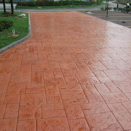 5、使用藝術地坪模具對地坪面層進行紋理處理。藝術地坪模具應配套使用,首先確定好紋理的分布方向,選好一塊模具放置的位置和角度,然后其它的模具依次緊貼一塊模具放置。彩色混凝土藝術地坪壓模采用壓模,壓模應由技術較好的人員進行作業以保證壓紋深度一致和模具放置的準確性。