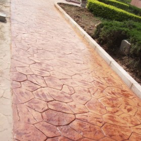 7、理論上對藝術地坪封閉2-3天后進行沖洗,正常情況下為了防止新造路面被污染,工程全部紋理壓印完成后統一進行沖洗。沖洗時不必將脫模粉全部沖洗干凈,應留有10%左右的脫模粉顏色,這樣的藝術地面就會有效果很好的漸變效果。