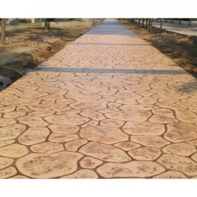 5、使用藝術地坪模具對地坪面層進行紋理處理。藝術地坪模具應配套使用,首先確定好紋理的分布方向,選好一塊模具放置的位置和角度,然后其它的模具依次緊貼一塊模具放置。彩色混凝土藝術地坪壓模采用壓模,壓模應由技術較好的人員進行作業以保證壓紋深度一致和模具放置的準確性。
