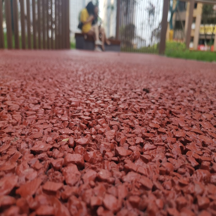 作為一種新的環保型、生態型的道路材料,該種透水路面面板鋪裝厚度根據巖性以及采用單粒徑巖石粒徑決定,一般厚度范圍在4~7cm?;鶎咏Y構可以采用半剛性基層或者是級配碎石、級配礫石透水基層,具有良好的透水性,是由聚氨酯膠粘劑與單級配或間斷級配骨料按一定配合比拌合而成的新型路面材料。目前該種材料主要用于鋪裝景觀道路等輕交通路面。