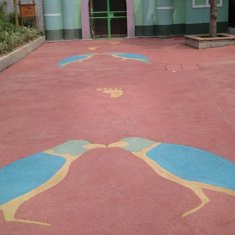 作為一種新的環保型、生態型的道路材料,該種透水路面面板鋪裝厚度根據巖性以及采用單粒徑巖石粒徑決定,一般厚度范圍在4~7cm。基層結構可以采用半剛性基層或者是級配碎石、級配礫石透水基層,具有良好的透水性,是由聚氨酯膠粘劑與單級配或間斷級配骨料按一定配合比拌合而成的新型路面材料。目前該種材料主要用于鋪裝景觀道路等輕交通路面。