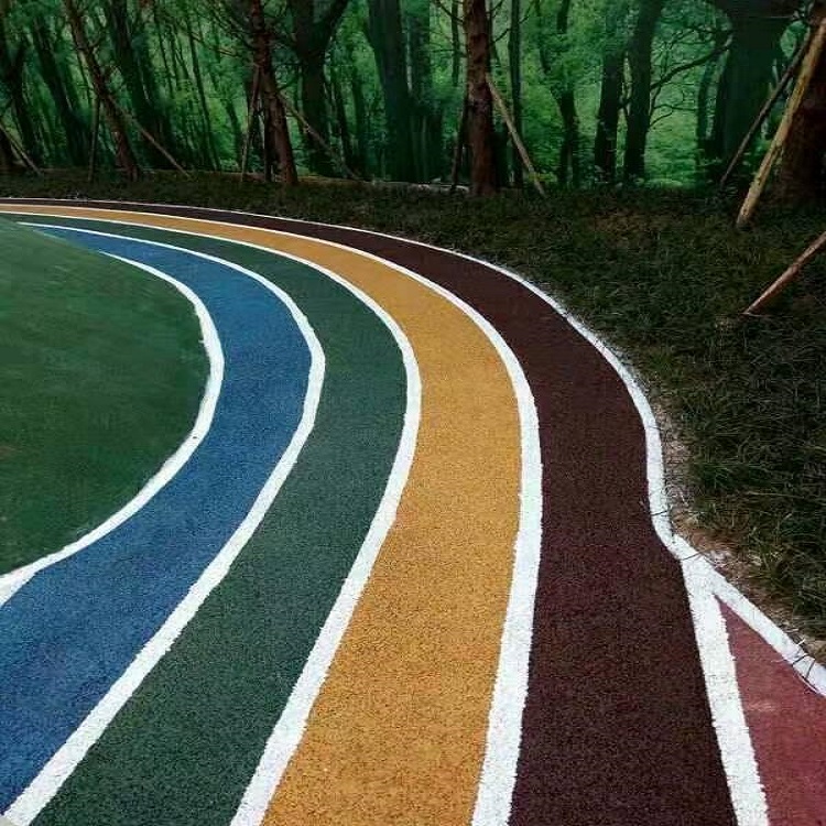 作為一種新的環(huán)保型、生態(tài)型的道路材料,該種透水路面面板鋪裝厚度根據(jù)巖性以及采用單粒徑巖石粒徑?jīng)Q定,一般厚度范圍在4~7cm。基層結(jié)構(gòu)可以采用半剛性基層或者是級(jí)配碎石、級(jí)配礫石透水基層,具有良好的透水性,是由聚氨酯膠粘劑與單級(jí)配或間斷級(jí)配骨料按一定配合比拌合而成的新型路面材料。目前該種材料主要用于鋪裝景觀道路等輕交通路面。