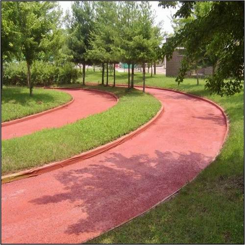 街道透水混凝土是由骨料、高標號水泥、摻合料,水性樹脂、彩色強化劑、穩定劑及水等拌制而成的一種多孔輕質混凝土,由粗骨料表面包覆一薄層漿料相互粘結而成孔穴均勻分部的蜂窩狀結構,故具有透氣、透水和重量輕的特點,作為環境負荷減少型混凝土,透水地坪的研究開發越來越受重視。