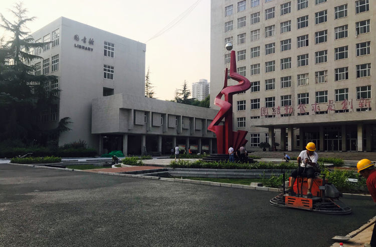 透水混凝土屬干性混凝土料,其初凝快,攤鋪必須及時。對于人行道面,大面積施工采用分塊隔倉方式進行攤鋪物料,其為1.1。將混合物均勻攤鋪在工作面上,用括尺找準平整度和控制一定的泛水度,然而(厚度厚的用平板振動器)搗實不宜采用,后用抹合拍平,抹合不能有明水。