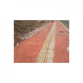 5、使用藝術地坪模具對地坪面層進行紋理處理。藝術地坪模具應配套使用,首先確定好紋理的分布方向,選好一塊模具放置的位置和角度,然后其它的模具依次緊貼一塊模具放置。彩色混凝土藝術地坪壓模采用壓模,壓模應由技術較好的人員進行作業以保證壓紋深度一致和模具放置的準確性。