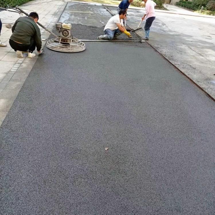 透水混凝土拌合物中水泥漿的稠度較大,且數(shù)量少,為了使水泥漿能夠保證均勻的包裹在骨料上,宜采用強(qiáng)制式攪拌機(jī),攪拌時間比常規(guī)混凝土要長,由于透水混凝土拌合物比較干硬,在澆注之前,路基必須先用水濕潤,原因是透水性混凝土中的攪拌水量有限,如果路基材料在吸收其中部分拌合水,就會加速水泥的凝結(jié),減少用于路面澆注、振搗、壓實(shí)和接縫的時間,并且快速失水會減弱骨料間的黏結(jié)強(qiáng)度。