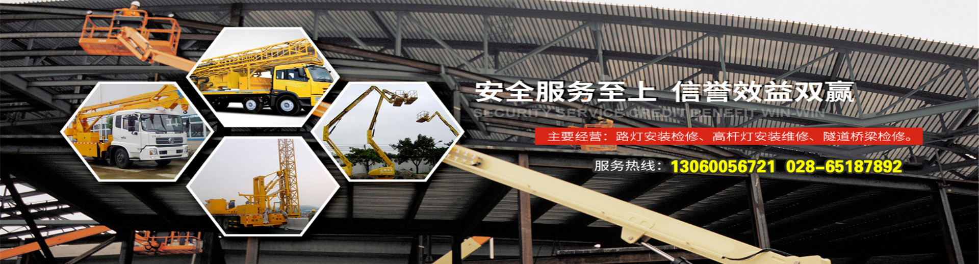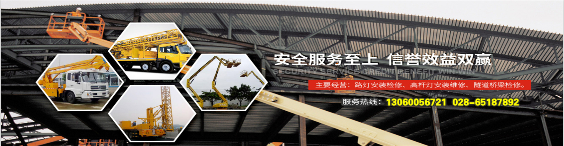 成都鑫英杰機械設備有限公司,主要業務有高空作業車,高空作業平臺,高空車,升降車,云梯車,登高車、吊籃車,路燈維修車,橋檢車,橋梁檢測車,隧道檢測車、吊車,舉高車、監控安裝車、出租、租賃.成都鑫英杰機械設備租賃有限公司是經運輸局批準工商局注冊成立的一家具有獨立法人資格的專業設備租賃公司,主要經營:路燈維修車、電力安裝車、路燈安裝車、高空作業平臺、升降機、高空作業車出租,橋梁檢測,攝像頭安裝維修,吊車出租,叉車出租。本公司專業承接高空作業車、云梯車、吊籃升降車出租。服務經營范圍:公司專業提供高空作業車出租、路燈維修車出租、高空作業平臺出租、升降機等機械設備租賃服務。高空作業車租賃公司,具有多種車載移動式高空作業設備租賃公司、是四川省僅有幾家正規高空設備租賃資質公司之一。一:高空作業車,升降平臺:升降平臺,8到16米;高空作業車;12米到30米。種類齊全、性能穩定,安全可靠。二:橋梁檢測車:12-24米,種類齊全,下降深度深跨護欄高,不中斷交通,作業效率高,操作方便,安全可靠性高。三:路燈安裝,監控,戶外廣告牌安裝:承接各地區路燈,監控,戶外廣告牌安裝更換,高桿燈安裝檢修,路燈安裝檢修,隧道檢修... [詳細介紹]